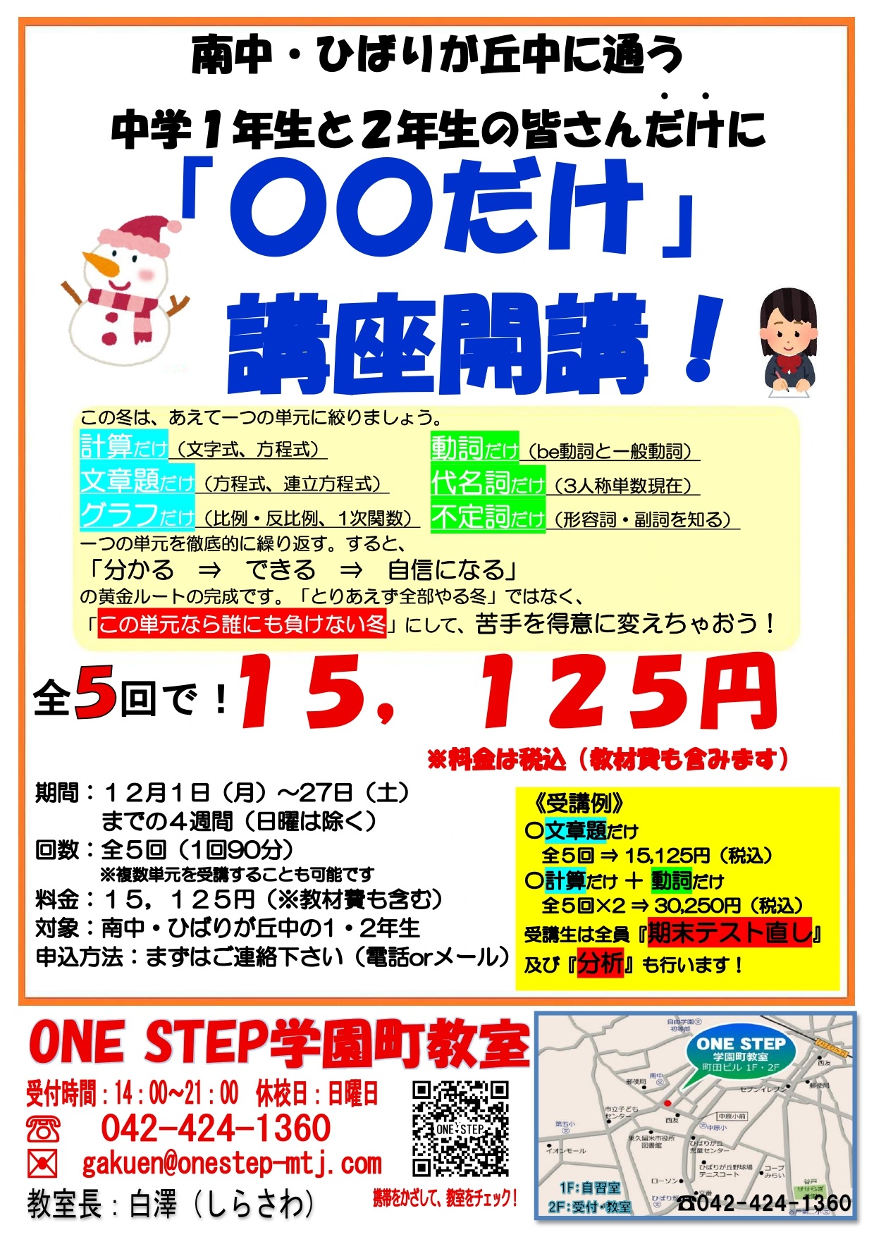 この冬は、あえて一つの単元に絞って徹底的に演習を繰り返していきましょう!