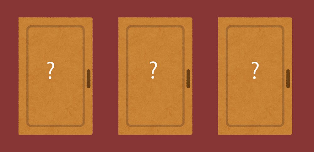 3つのドアのうち、1つの後ろに当たり、残り2つはハズレがあります。