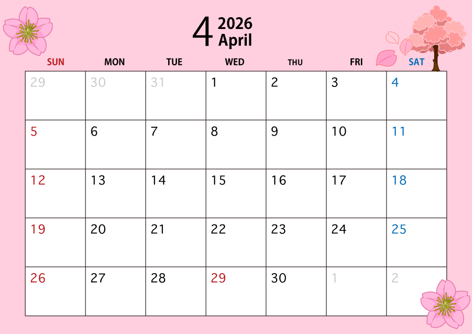 教室は、日曜日と第五週(29~30日)がお休みとなります。